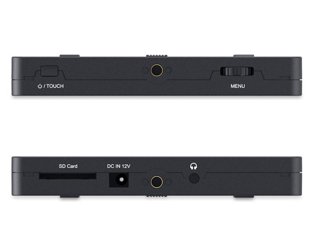 - Izhodi: 4K HDMI, stereo slušalke, 8V= napajanje (zunanji priključek 5,5 mm, notranji premer 2,1 mm; za napajanje kamer, ko je monitor priključen na napajanje 12V=)