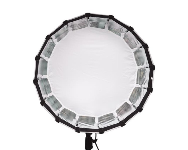 FEELWORLD FSP90 je globok parabolični softbox s premerom 90 cm. Uporablja industrijski filmski material za mehko svetlobo in visoko odbojno prevleko. Ima mehko svetlobno površino v premeru in gladek prehod za zatiranje navzkrižne svetlobe, kar zagotavlja razmeroma natančno barvno temperaturo in zadovoljuje potrebe osvetljevalcev po mehkih svetlobnih učinkih in svetlobni moči. Ker ga je enostavno razstaviti in shraniti, je idealna izbira za video produkcijo, oddajanje v živo, studijsko snemanje, portretno fotografijo, videografijo izdelkov itd.