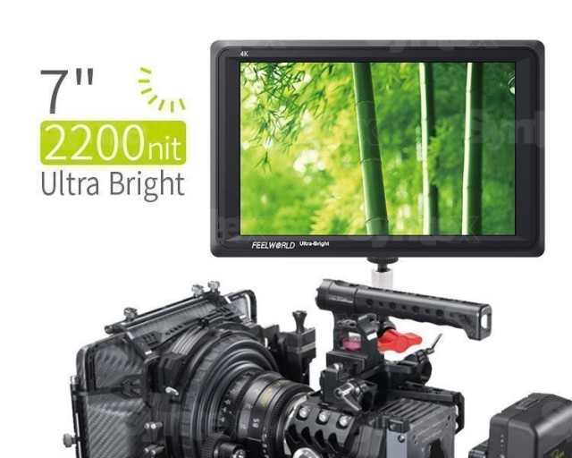 Izjemno lahek in tanek 7-palčni monitor za kamero 4K z vhodom/izhodom HDMI in ploščo IPS z visoko svetilnostjo 2 200 cd/m² za odlično berljivost tudi pri močni dnevni svetlobi.