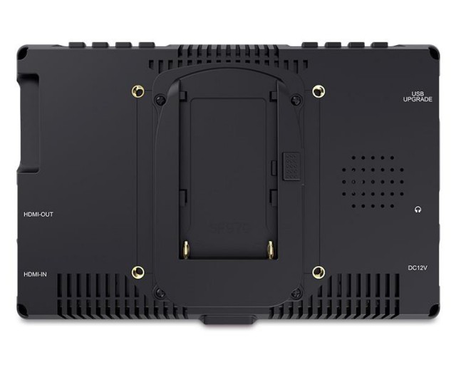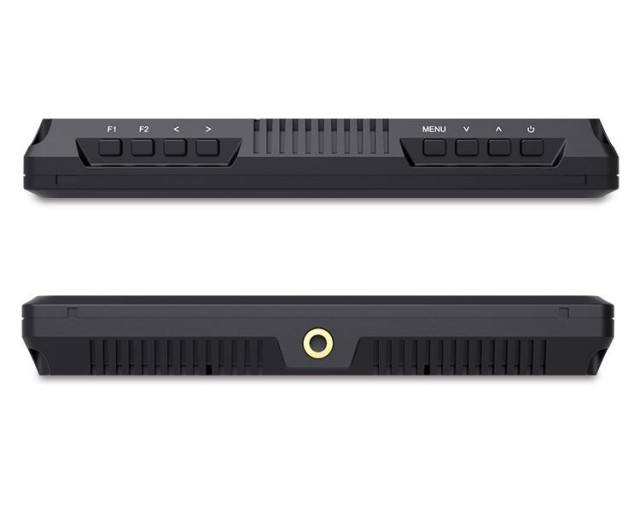 ... zagotavljajo gumbi na zgornjem robu zaslona, vključno s funkcijskimi gumbi, ki jim lahko dodelite poljubno funkcijo, npr. pomoč pri ostrenju, prikaz lažnih barv itd. Na spodnjem robu je standardni navoj 1/4"-20 za namestitev monitorja na naprave DSLR/DSLM/kamere ali neposredno na fotoaparate z uporabo (priložene) redukcije vtičnice za bliskavico, na zadnji plošči pa je tudi standardni montažni navoj VESA z razmikom 75 mm.