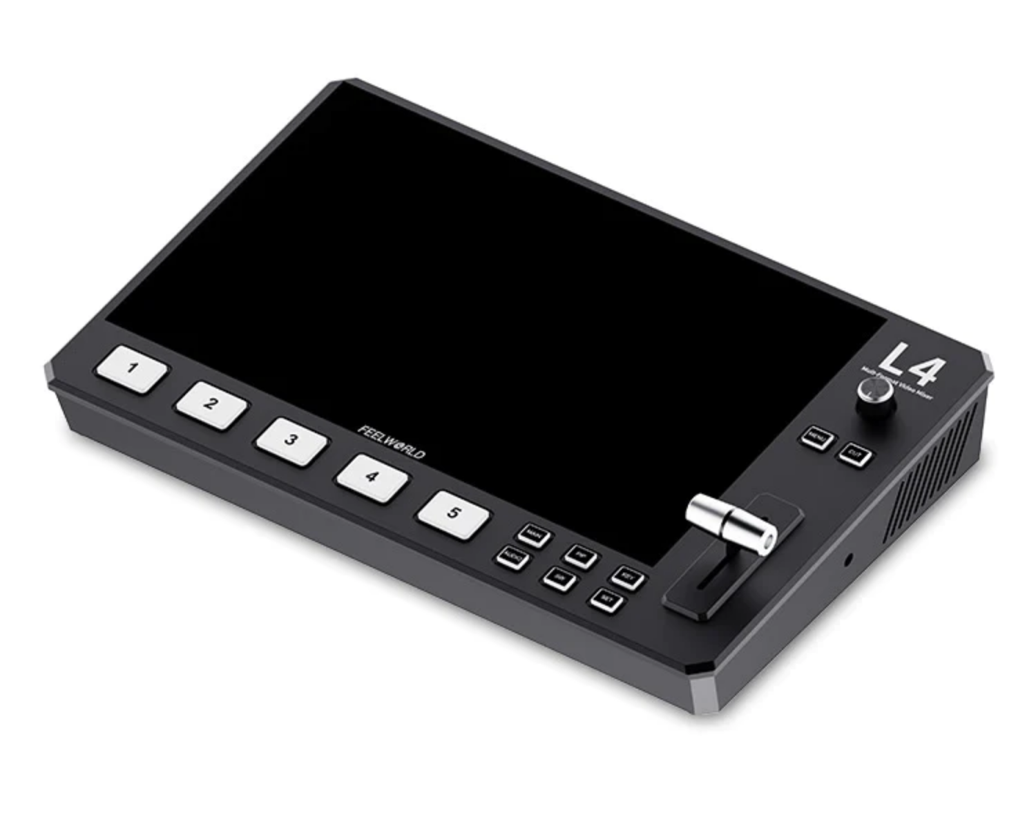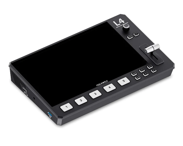FEELWORLD L4 Video Switcher je vsestransko orodje, zasnovano za profesionalne produkcije z več kamerami v živo. S 4 vhodi HDMI in 1 vhodom SDI omogoča do 5 virov signala, zato je idealen za velike dogodke in prenos v živo. Njegov intuitivni vmesnik, 10,1-palčni zaslon na dotik in številne funkcije, vključno s chroma key, prekrivanjem logotipa in prehodnimi učinki, uporabnikom omogočajo ustvarjalni nadzor. Ne glede na to, ali ste izkušeni profesionalec ali začetnik, je L4 zaradi funkcionalnosti plug-and-play, robustne zasnove in pretakanja prek USB 3.0 dostopen vsem, ki želijo izboljšati svoje video vsebine in predstavitve, bodisi za spletno pretakanje bodisi za poslovne aplikacije.