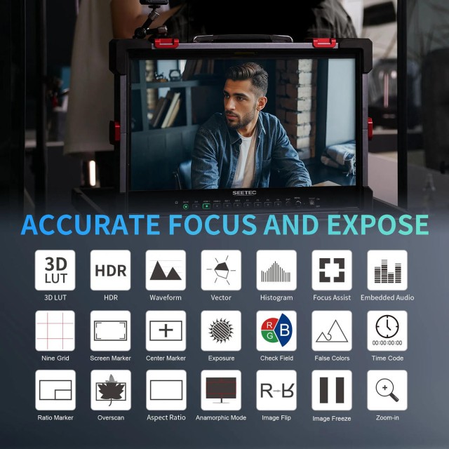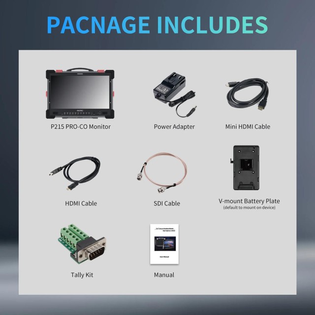 Monitor ponuja spremljanje parade RGB, parade YUV, parade Y, vektorskopa, histograma in ravni zvoka. Zaradi tega je monitor P215-Pro idealna izbira za spremljanje produkcije v živo, zato vam ni več treba uporabljati ločenih dragih merilnikov!
