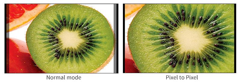 Omogoči filmskemu ustvarjalcu, da preveri sliko iz vira signala 1:1 brez skaliranja. Ta funkcija je bistvena za zajem optimalnih podrobnosti.