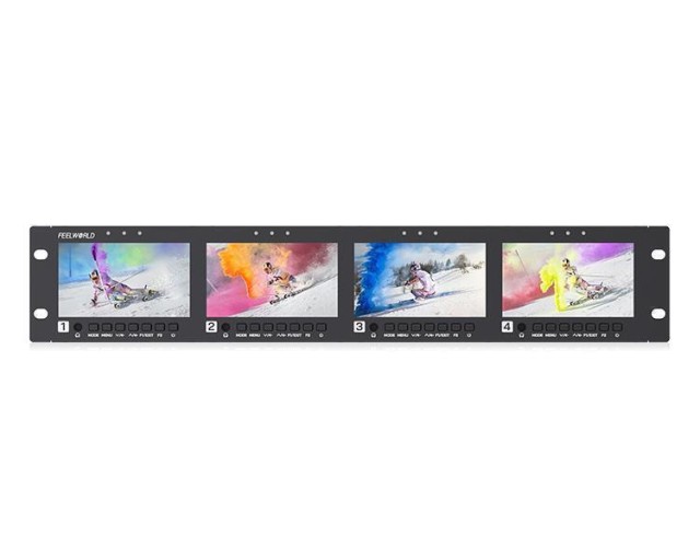 Feelworld Q41 je 4,5-palčni x4-zaslonski monitor 2RU za montažo v omaro, ki ima vhode/izhode 3G-SDI, 4K HDMI in AV. Idealen je za produkcijske postavitve v živo, saj ponuja jasne zaslone ločljivosti 1280x720 v kompaktni in profesionalni obliki za vgradnjo v omaro.