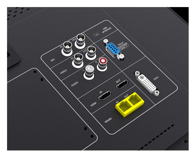 Vrhunski stropni monitor z 21,5 IPC LED-paneli (1920x1080, 16:9, 250 cd/m², 178° vidni koti, 3000:1 kontrast) in 1x 3G-SDI, 1x 4K HDMI, DVI, RS-485 in zvočnimi vhodi (L/R). Monitor ponuja tudi prikaz signalnih ukazov (UMD in Text-Tally; TSL 3.1/4.0), izhode 3G-SDI/HDMI, integriran zvočnik, izhod za slušalke, ploščo za baterijo V-Mount (opcijsko Gold Mount), vhod za napajanje s priključkom XLR4 in robusten aluminijast okvir. Seveda so na voljo tudi funkcije za pomoč pri ostrenju, povečavo, pregledovanje slike po slikovnih točkah, obračanje slike, preverjanje polovice kadra itd. Po želji lahko dobite prilagojeno aluminijasto ohišje.