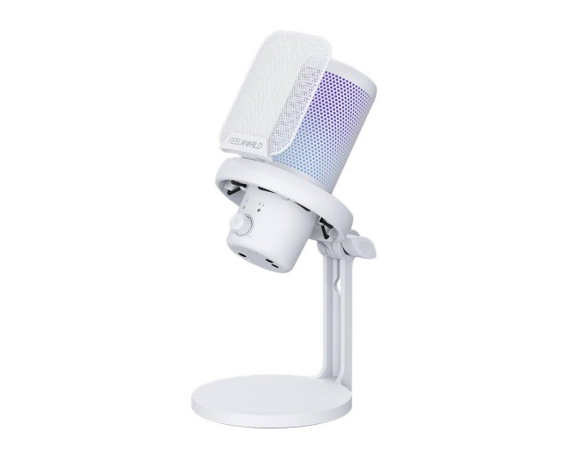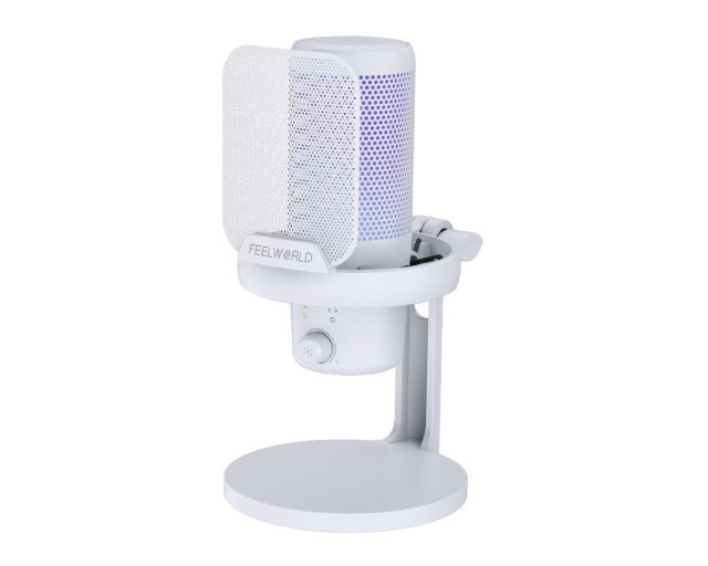 Feelworld VM1-XS-W je USB kondenzatorski mikrofon tipa plug-and-play s čisto belo površino, ki je idealen za pretakanje, igranje iger in podcasting. Ima kardioidno polarno vzorec za jasen zvok, namenski gumb za utišanje/odpravo hrupa, prilagodljivo večnamensko RGB osvetlitev in priloženo namizno stojalo.