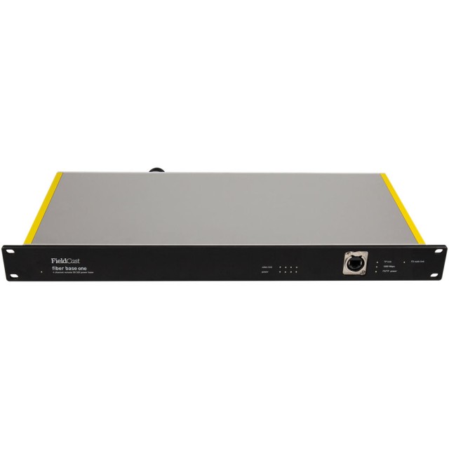 FieldCastov sistem Fiber Base One omogoča preklapljanje, spremljanje in nadzor do štirih kamer PTZ z uporabo optičnih kablov. Ta naprava 1 RU služi kot osrednje vozlišče za upravljanje kamer PTZ in priključenih enot Fiber Node One.