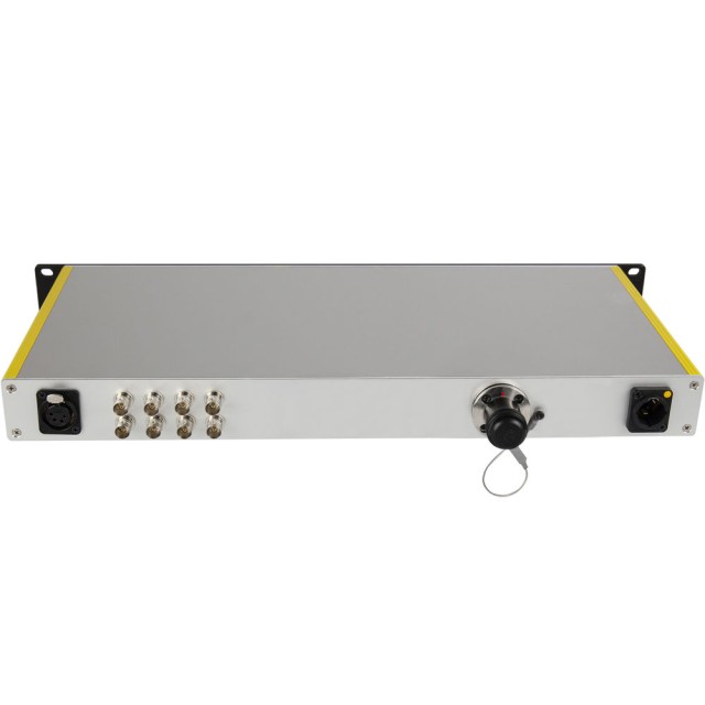 Poleg napajanja in krmiljenja ponuja Fiber Base One tudi priročne možnosti za spremljanje in preklapljanje. Zagotavlja štiri izhode 3G-SDI, s katerimi lahko po potrebi spremljate in preklapljate signale kamer. Naprava vključuje tudi vrata Ethernet LAN za omrežno povezljivost, kar omogoča daljinski nadzor in upravljanje kamer PTZ. Poleg tega ima štiripolni izhod XLR za napajanje, ki ga lahko uporabite z opcijskim krmilnikom IP PTZ.