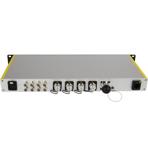S štirimi hibridnimi optičnimi vhodi Fiber Node One omogoča nemoteno povezavo do štirih optičnih priključkov Monk PTZ. Ta nastavitev omogoča nadzor, distribucijo energije in spremljanje do štirih kamer PTZ z vmesniki 3G-SDI.