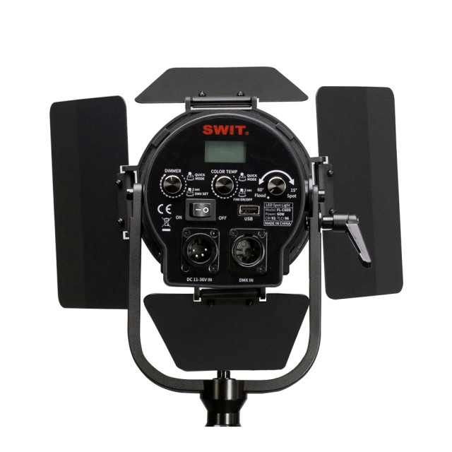 Prenosna točkasta LED luč FL-C60D uporablja diode LED tipa Chip-On-Board z življenjsko dobo 50.000 ur, močjo 60 W, dvojno barvo, nastavitvijo kota ostrenja DMX, kot ključno luč kompleta za osvetlitev intervjuja ali video produkcije na terenu.