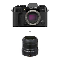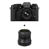 FUJIFILM X-T50 v črni barvi je skupaj z objektivom XC15-45mm f/3,5-5,6 OIS eleganten