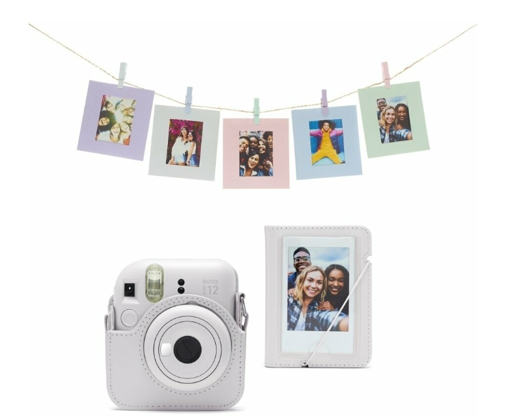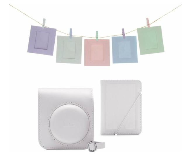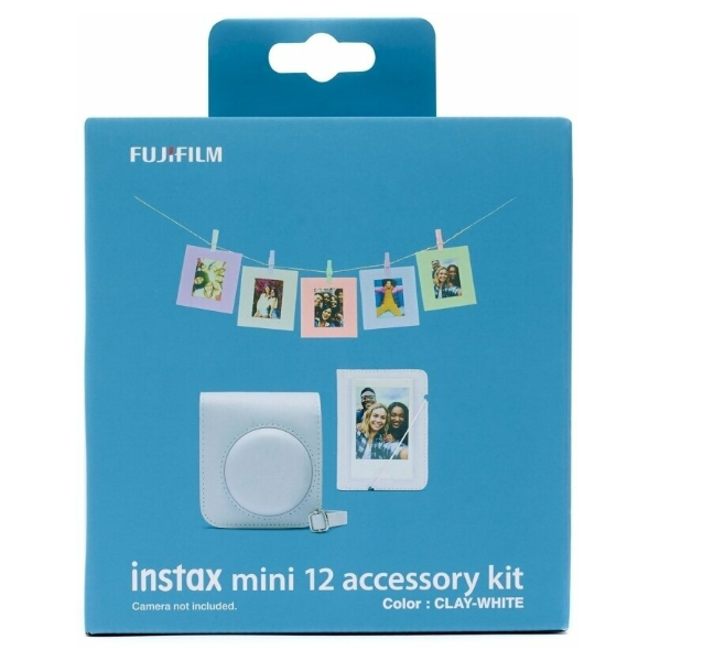 Komplet dodatkov Fujifilm Instax Mini 12 (bel) je eleganten, barvno usklajen komplet dodatkov, zasnovan kot dopolnilo za vaš fotoaparat Instax Mini 12. Vključuje zaščitni etui za fotoaparat, mini album za 29 fotografij in 10 paketov fotografskih kartic z vrvico in kljukicami za obešanje – idealno za zajemanje, shranjevanje in prikazovanje vaših spominov.