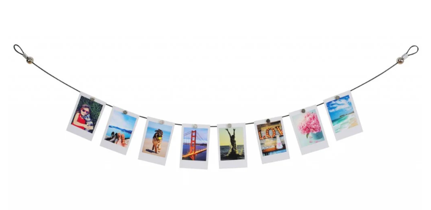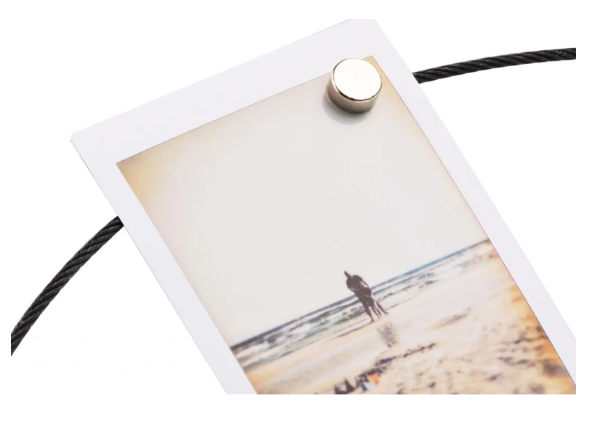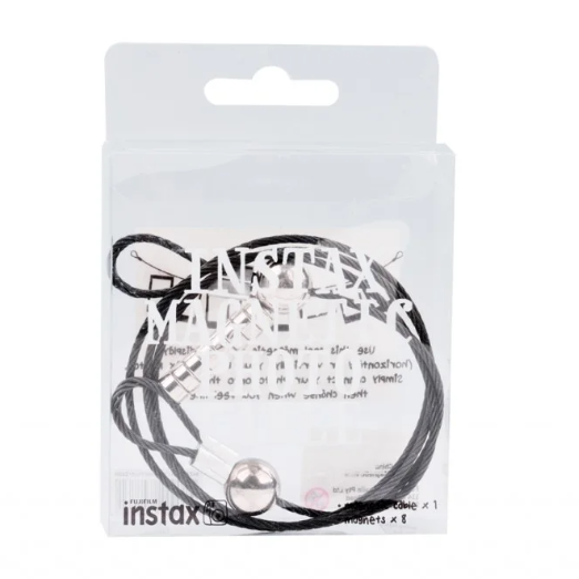 Magnetni foto kabel Fujifilm INSTAX ponuja sodobno in vsestransko rešitev za prikazovanje vaših najbolj nepozabnih trenutkov. Ta magnetna vrv za obešanje lahko hkrati drži več fotografij, zato je primerna za vse formate fotografij, vključno s fotografijami Instax Mini, Square in Wide. Njeni močni magneti varno pritrdijo vsako fotografijo, ne da bi jo poškodovali, medtem ko eleganten, minimalističen dizajn dopolnjuje vsak dom, pisarno ali ustvarjalni prostor.