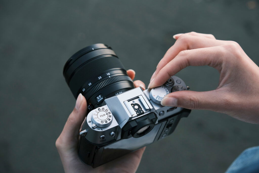 Na zgornji plošči fotoaparata FUJIFILM X-T50 so nameščeni izbirniki za hitrost zaklopa in kompenzacijo osvetlitve ter povsem novi izbirniki za simulacijo filma. Skupaj z obročem zaslonke na večini objektivov XF lahko nastavitve preverite in prilagodite, ne da bi vklopili fotoaparat, zato se lahko osredotočite na najpomembnejše: ustvarjanje popolne slike.