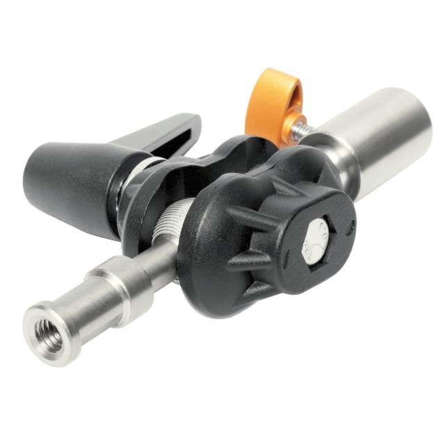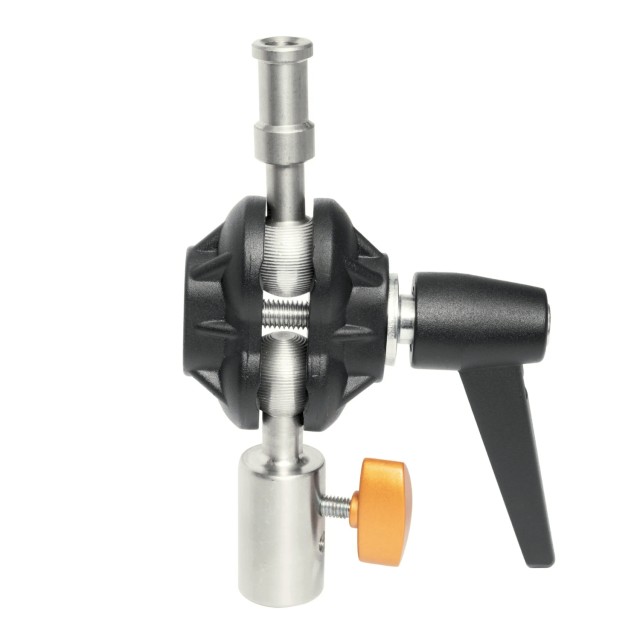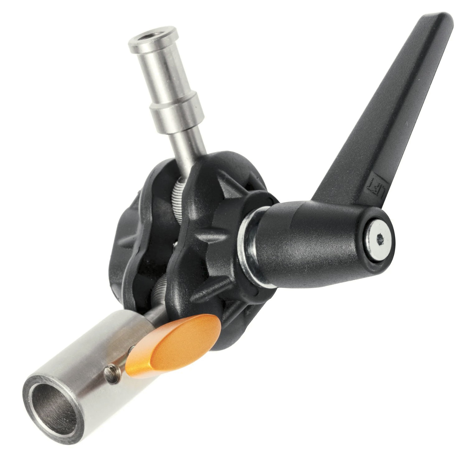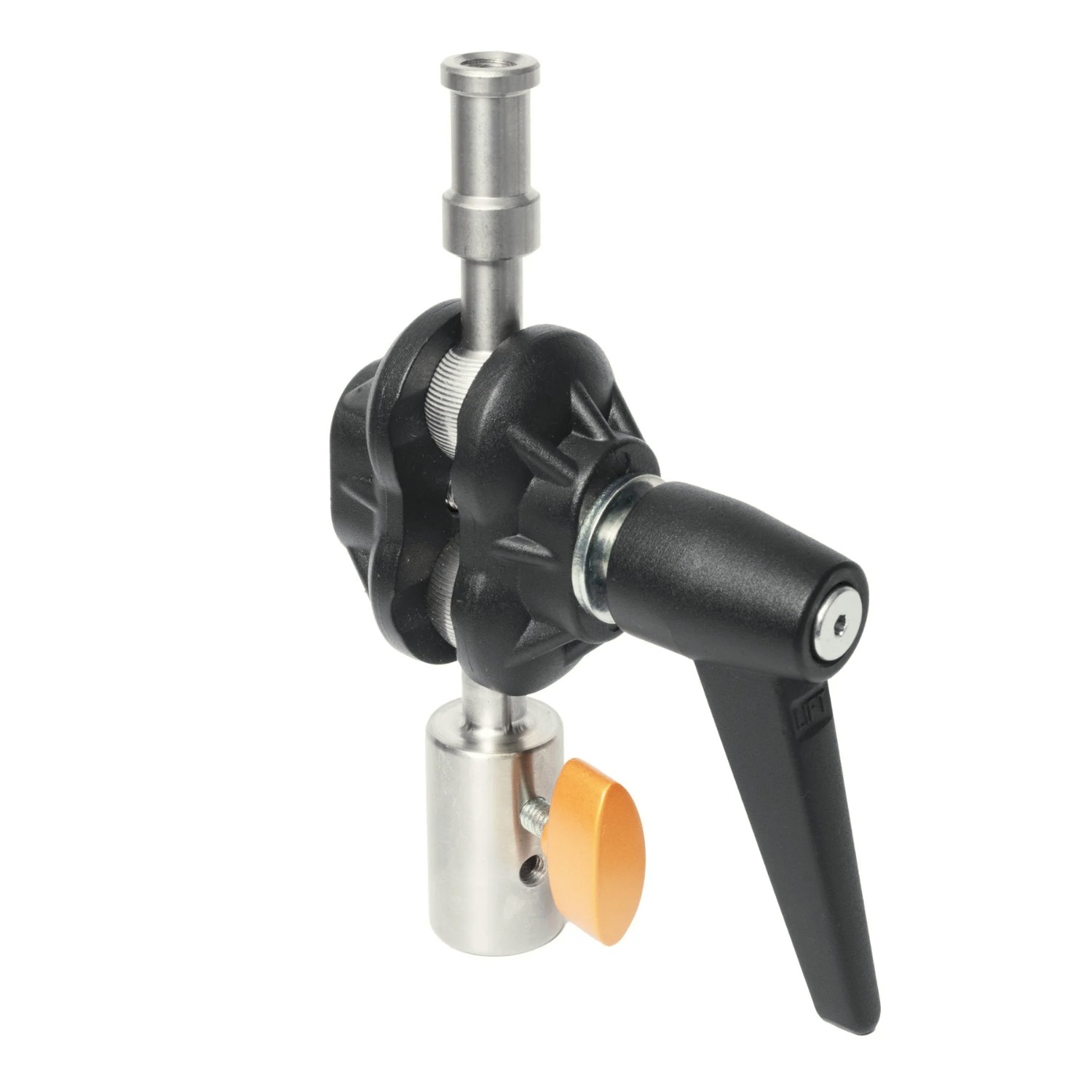AB10RS ima dva artikulirana kroglasta sklepa z mehanizmom za zapiranje s sponko, kar omogoča natančno nastavitev in varno namestitev plošč LiteFlow. Njegov standardni 5/8-palčni sornik z ravno stranico preprečuje neželeno vrtenje, hkrati pa ima tudi 1/4-palčni navoj za pritrditev dodatne opreme. Standardni 5/8-palčni sprejemnik omogoča enostavno namestitev ročaja na svetlobne stojala, C-stojala, ročaje ali drugo studijsko opremo. AB10RS razširja vsestranskost vaših LiteFlow plošč, poenostavlja montažo in odpira nove ustvarjalne možnosti za profesionalne svetlobne postavitve.