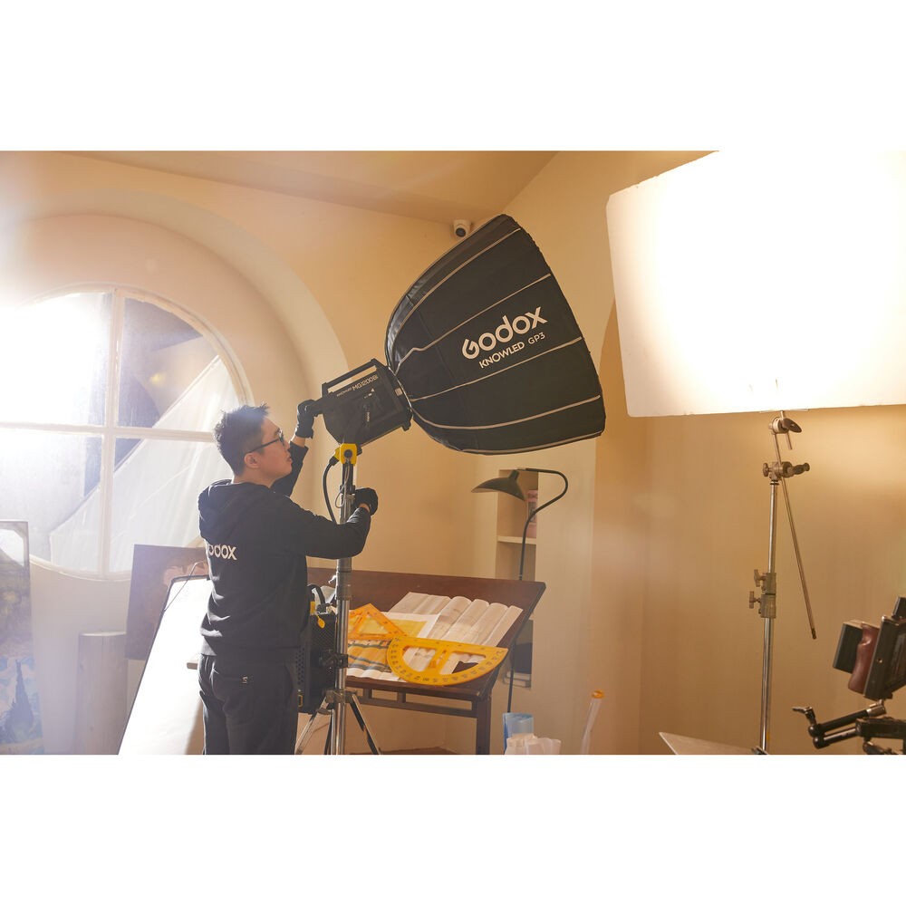 Doživite moč in natančnost Godox Knowled MG1200Bi K1 Bi-Color LED Monolight, vodilne svetilke, zasnovane za zahtevne kinematografe in strokovnjake za osvetljevanje. MG1200Bi z močjo 1200 W v barvnem razponu 2800–6500 K proizvaja naravno, enakomerno svetlobo z izjemno natančnostjo (CRI 96, TLCI 96). Zasnovana brez čip optike, posnema naravno kakovost sončnega žarka in zagotavlja dosledno delovanje pri vseh barvnih temperaturah.