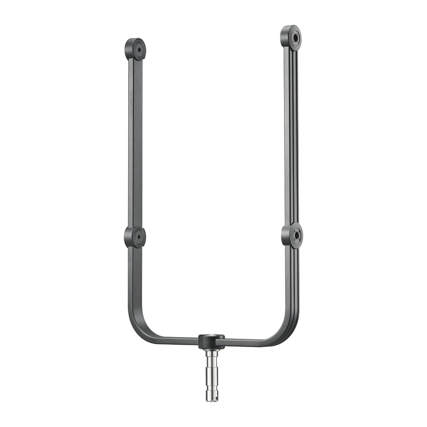Godox Knowled Double Vertical Yoke P300RY03 je robustna in vsestranska rešitev za montažo, zasnovana za KNOWLED P300R 1x1 RGB Pixel Panel Lights. Ta nosilec je idealen za kinematografe, osvetljevalce in virtualne produkcijske postavitve, saj omogoča vertikalno montažo dveh plošč na en sam stojalo, hkrati pa omogoča neodvisno vrtenje vsake plošče za natančen nadzor nad koti osvetlitve. 1-1/8" junior pin konektor nosilca zagotavlja varno pritrditev na kombinirana ali navijalna stojala, kar omogoča enostavno kombiniranje dveh plošč za večjo svetilnost ali pokritost. S svojo ergonomsko in profesionalno zasnovo je P300RY03 nepogrešljivo orodje za ustvarjanje večjih nizov plošč P300R in maksimiranje kreativnih možnosti osvetlitve. (Plošče P300R se prodajajo ločeno.)