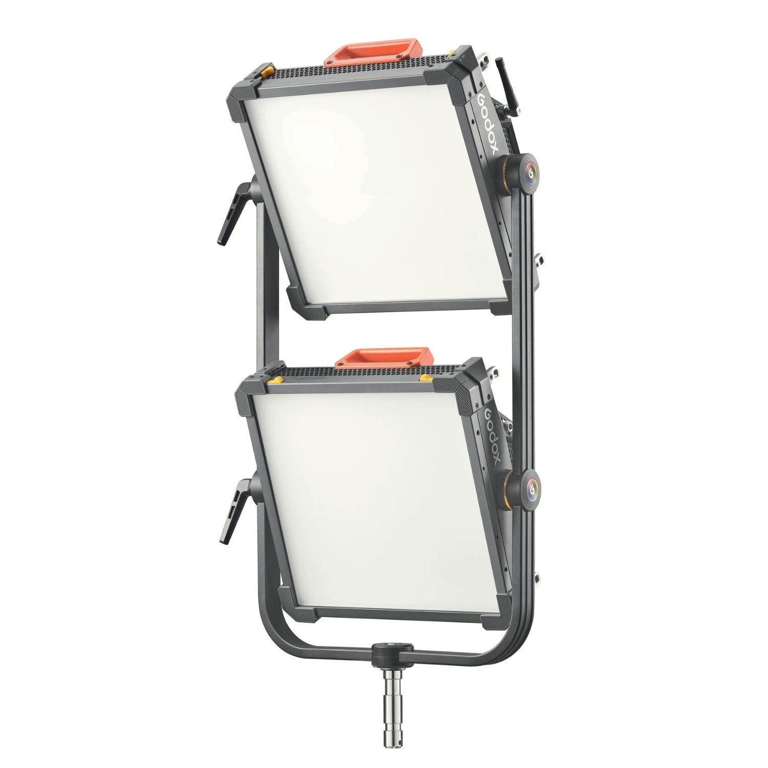 Godox Knowled Double Vertical Yoke P300RY03 omogoča namestitev dveh KNOWLED P300R RGB Pixel Panelov na en sam stojalo, z neodvisnim vrtenjem za vsak panel – idealno za podvojitev svetlobnega izhoda in izboljšanje pokritosti za kinematografijo in virtualno produkcijo.