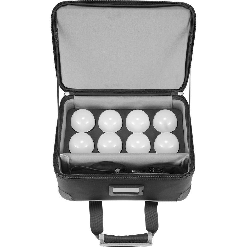 Priložena torbica za polnjenje in prenašanje omogoča urejeno shranjevanje in zaščito vseh osmih žarnic, osem okroglih difuzorjev pa pomaga mehčati in oblikovati svetlobni izhod. Žarnice C10R s podnožjem E26/E27 so primerne za standardne vtičnice, kar jih naredi vsestransko orodje za praktično razsvetljavo, rekvizite in ustvarjalne svetlobne zasnove.