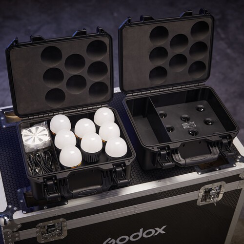 Godox Knowled osem-svetlobni polnilni komplet C7R-K8 za svetilke C7R. Učinkovito shranjevanje in polnjenje do osmih LED-svetilk C7R v enem trpežnem kovčku. Idealno za mobilne filmarje in studijske profesionalce, ki potrebujejo organizirane in takoj uporabne rešitve za osvetlitev. Poenostavite svoj delovni tok s tem priročnim kompletom.