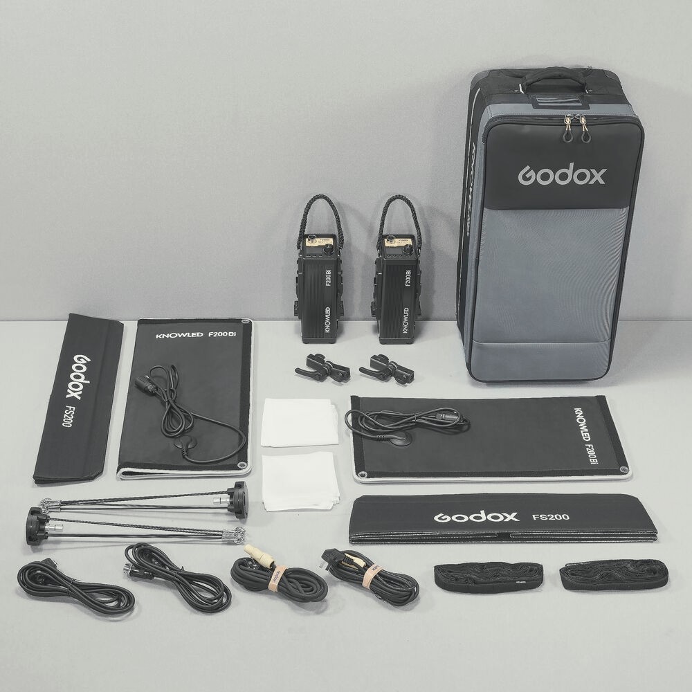 Komplet F200Bi K2 vključuje softboxe in odstranljive rešetke za natančno oblikovanje svetlobe, X-nosilce in adapterje za varno montažo, krmilnike/napajalne enote, priključne in napajalne kable ter oblazinjeno torbo za preprosto potovanje. Z vrhunsko kakovostjo izdelave, natančno močjo in neprimerljivo prilagodljivostjo je komplet Godox KNOWLED F200Bi K2 vrhunski sistem osvetlitve za profesionalce, ki potrebujejo robustno, prilagodljivo in visoko zmogljivo LED rešitev.