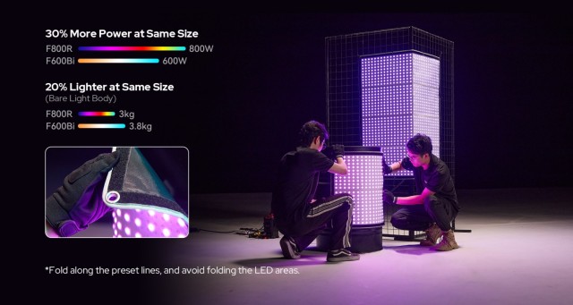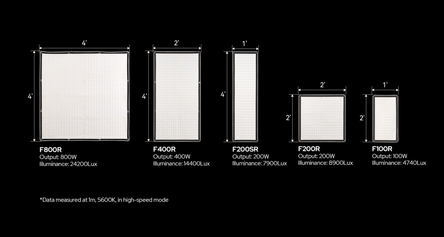 F100R je zasnovan za realne produkcijske okolje in ima zaščito IP54 pred vremenskimi vplivi, ki ščiti svetlobno podlago in krmilnik pred prahom in brizganjem vode, zaradi česar je primeren za snemanje v studiu in na prostem. Novo nadgrajeni kovinski X-nosilec izboljšuje vzdržljivost in omogoča lažjo namestitev v omejenih prostorih.