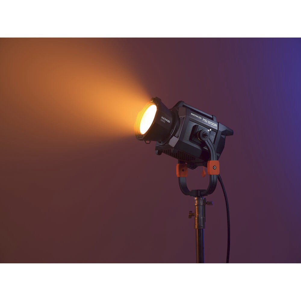 Izboljšajte svojo osvetlitev z Godox Knowled MG1200R RGB LED Monolight Kit, močnim 1500 W polno barvnim RGB svetilom, zasnovanim za profesionalne filmarje in fotografe. Ta vsestranska svetilka zagotavlja 21.300 luksov na 9,8' (z vključenim 45° reflektorjem) in ponuja širok razpon barvne temperature 1800–10.000 K za natančno in dinamično osvetlitev. Z oceno CRI 96 in TLCI 95 zagotavlja izjemno barvno zvestobo, medtem ko vgrajeni DMX, CRMX in nadzor prek aplikacije omogočajo prilagodljivo upravljanje do 131' oddaljenosti.