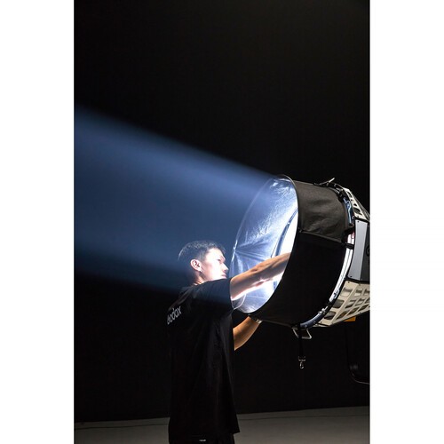 Max60 ima srebrno notranjost, ki poveča intenzivnost svetlobe in ohranja ostre robove žarka za natančen nadzor osvetlitve. Vmesnik G-Mount zagotavlja varno namestitev brez orodja na združljive svetilke Godox Knowled, kar omogoča hitro nastavitev in učinkovite prehode med delovnimi postopki. Poleg tega se brezhibno integrira v sistem Godox LiteFlow, kar kinematografom omogoča izpopolnjevanje odbojev in dinamično oblikovanje svetlobe v kompleksnih svetlobnih nastavitvah.