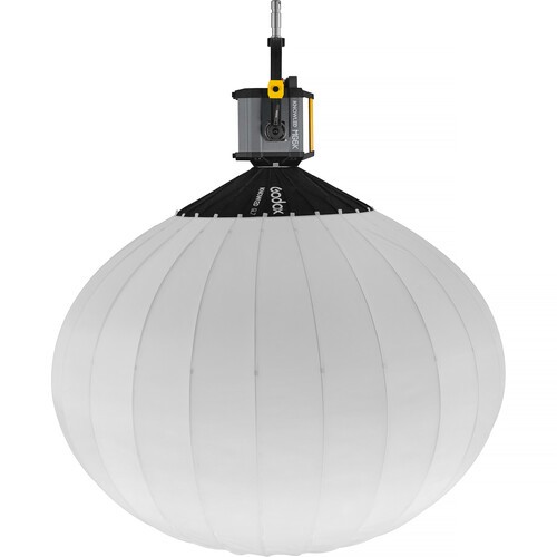 Ogromna 7-foot (2,1 m) sferična lanterna softbox, zasnovana za ultra mehko, vsesmerno osvetlitev v velikih filmskih in televizijskih produkcijah. Združljiva z Godoxovimi G-Mount LED-svetilkami.