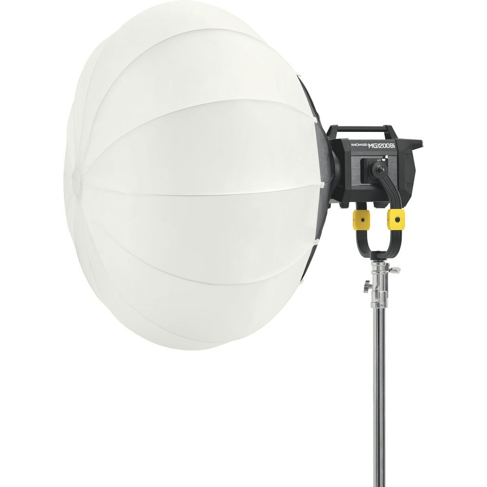 Godox Knowled G-Mount 90 cm Lantern Softbox zagotavlja lepo enakomerno, vsesmerno osvetlitev za naprave Godox MG-serije, z lastniškim dizajnom G-mount za brezhibno združljivost in hitro namestitev. Ta 35-palčni lantern softbox je izdelan iz trpežnega poliestra in ognjevarnega bombaža ter zagotavlja mehko, naravno osvetlitev, idealno za intervjuje, filmska snemanja, komercialna snemanja in studijska okolja. Priložena snemljiva krila omogočajo natančen nadzor svetlobe, oblikovanje in usmerjanje svetlobe točno tja, kjer jo potrebujete.