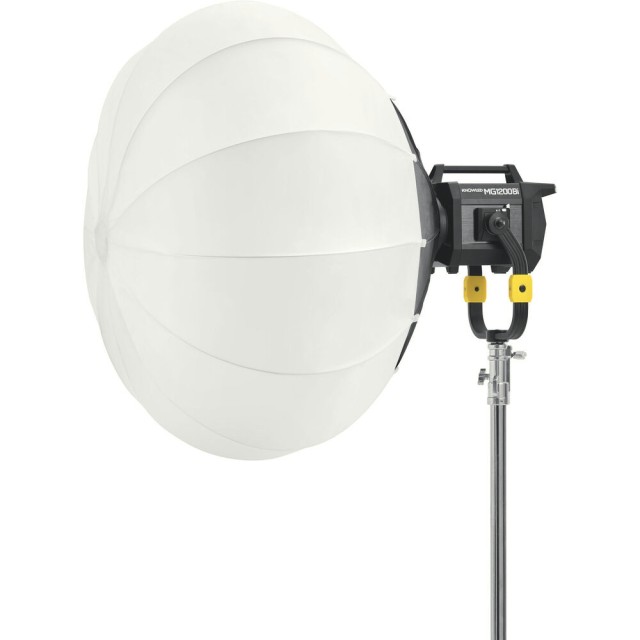 Godox Knowled G-Mount 90 cm Lantern Softbox je zasnovan za zagotavljanje mehke, 360° obsežne osvetlitve za kinematografe, videografe in fotografe, ki uporabljajo naprave MG1200BI, MG2400BI, MG1200R ali MG2400R. Ta 35-palčni sferični softbox, zasnovan posebej za lastniški sistem Godox G-mount, zagotavlja popolno združljivost brez potrebe po dodatnih adapterjih. Njegova bela notranjost izboljša difuzijo za čisto, naravno svetlobo, medtem ko trpežna konstrukcija iz poliestra in ognjevarne bombažne tkanine zagotavlja dolgotrajno delovanje v zahtevnih produkcijskih okoljih. Lanterna je idealna za osvetljevanje celotnih prostorov ali ustvarjanje gladke, ambientalne svetlobe, vključuje pa tudi snemljivo krilo za nadzor smeri, ki uporabnikom omogoča fleksibilnost pri oblikovanju in omejevanju razlitja svetlobe po potrebi. Ne glede na to, ali se uporablja na filmskih prizoriščih, lokacijah za oddajanje ali v fotografskih studijih, ta lanterna softbox zagotavlja zanesljive, visokokakovostne rezultate z enostavno namestitvijo in razstavljanjem.