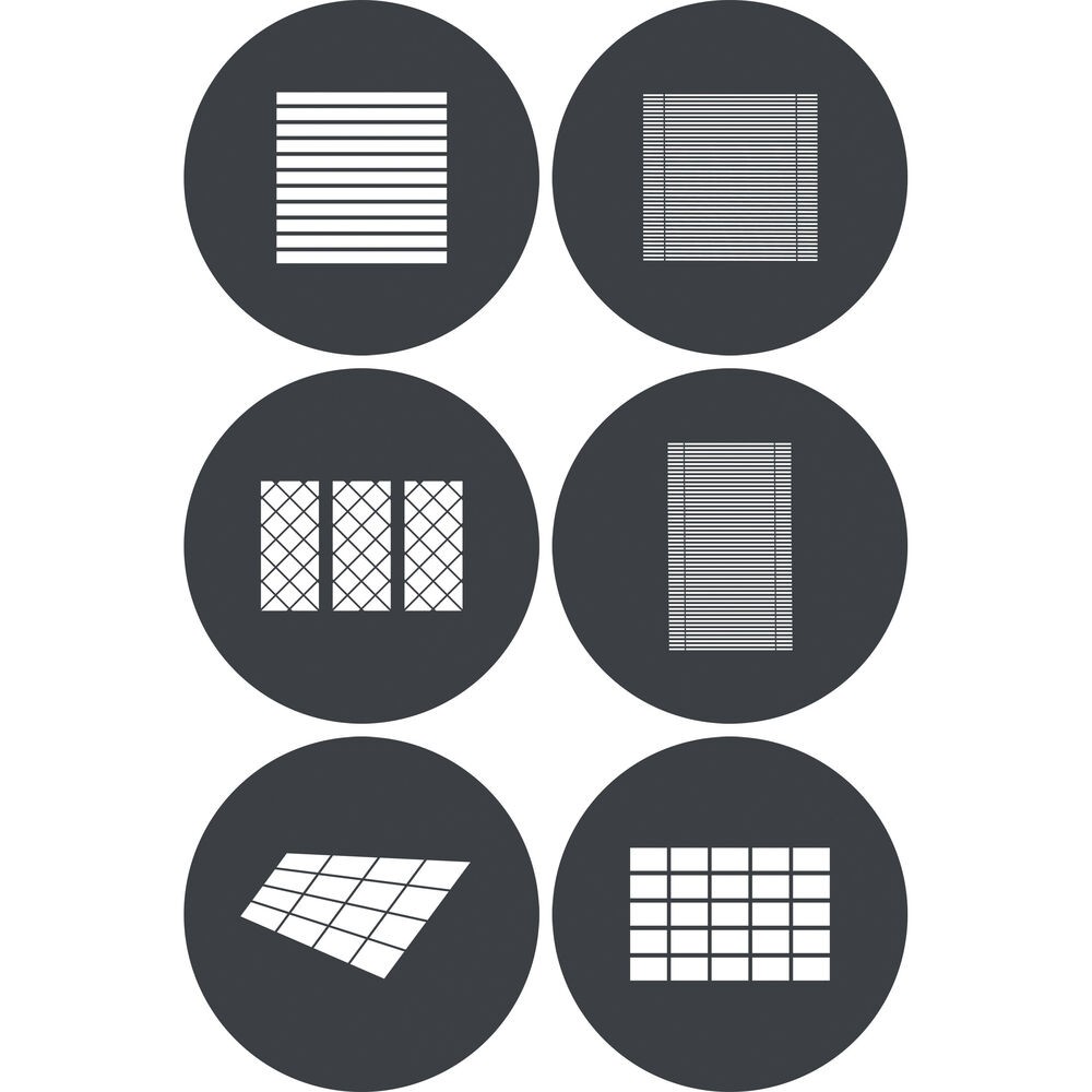 Godox Knowled GP-GS4 GOBO Set vključuje šest 148-milimetrskih jeklenih gobov, zasnovanih za MG1200Bi Spotlight Attachment, ki omogočajo različne vzorce za ustvarjalno projekcijo v gledališču, filmu, modi ali fotografiji.