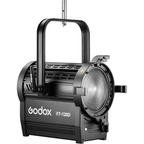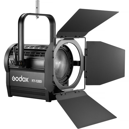 Godox Knowled LED Fresnel Light (Daylight) F7-120D K1 je zmogljiva, profesionalna svetlobna rešitev, zasnovana za studije, filmsko in televizijsko produkcijo. Ta naprava brez ventilatorja zagotavlja impresivnih 71.100 luksov na 3,3' z izhodno močjo 5600K, uravnoteženo z dnevno svetlobo, in zagotavlja tiho, visoko natančno osvetlitev z nastavljivim kotom žarka 15–60°. Z barvno natančnostjo CRI 96 in TLCI 98, vgrajenim/DMX/Bluetooth nadzorom prek aplikacije in robustno kovinsko konstrukcijo ponuja izjemno zmogljivost in vsestranskost za zahtevna produkcijska okolja.