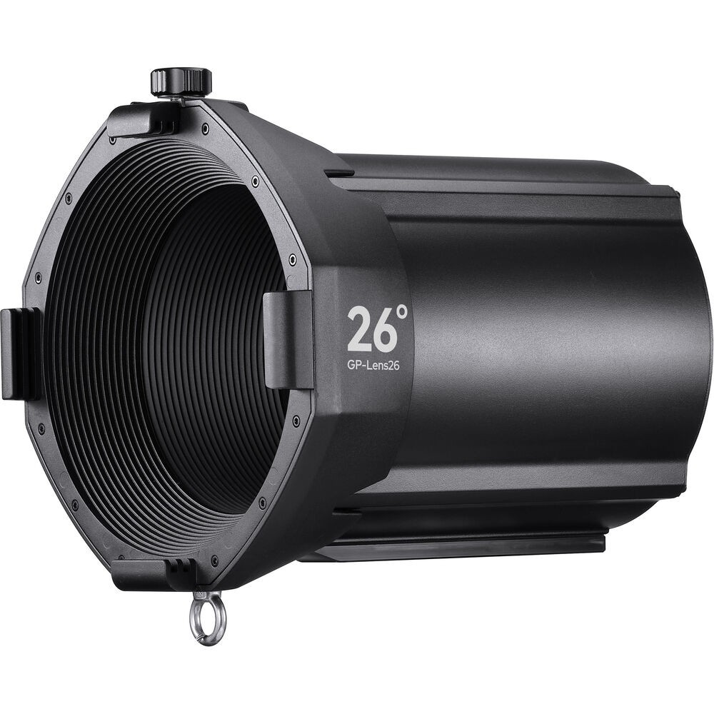 Godox Knowled GP26K 26° objektiv je natančen projekcijski objektiv za sistem Godox G-Mount, zasnovan za proizvodnjo jasnega, enakomernega 26° žarka z izboljšano svetlostjo in minimalnimi aberacijami. Ta objektiv, ki je idealen za projekcijo gobo in osredotočeno osvetlitev, poveča moč, ko je združen z MG1200Bi LED monolight, in zagotavlja do 8-krat svetlejšo osvetlitev, medtem ko njegovo ohišje za hitro namestitev omogoča hitro pritrditev in odstranitev.
