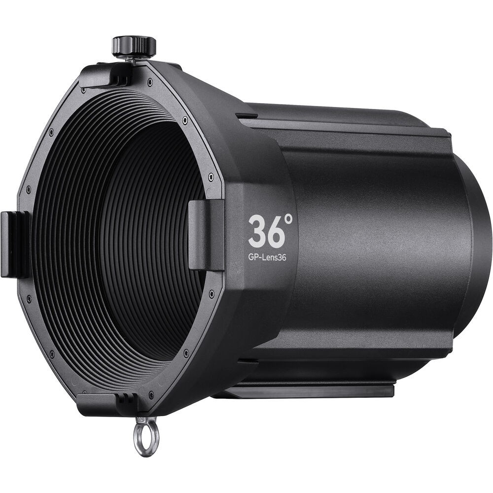 Godox Knowled GP36K 36° objektiv je profesionalni projekcijski objektiv, zasnovan za sistem Godox G-Mount. Ta fiksni 36° objektiv zagotavlja enakomeren, nadzorovan žarek z ostrimi robovi, povečano svetlostjo in minimalnim optičnim popačenjem, zaradi česar je idealen za projekcijo gobo, osvetljevanje in druge natančne aplikacije osvetlitve v fotografiji, filmu in gledaliških produkcijah. V kombinaciji z LED-monolightom MG1200Bi lahko GP36K poveča svetlobni izkoristek do osemkrat, kar zagotavlja visoko intenzivno osvetlitev za zahtevne projekte. Ohišje objektiva je zasnovano za hitro in varno namestitev in odstranitev iz G-Mount, kar zagotavlja vsestransko in učinkovito uporabo na snemalnem prizorišču. Objektiv GP36K 36° je primeren za kinematografe, fotografe in oblikovalce osvetlitve, saj z jasnostjo, natančnostjo in vrhunsko svetlostjo izboljšuje možnosti kreativne osvetlitve.