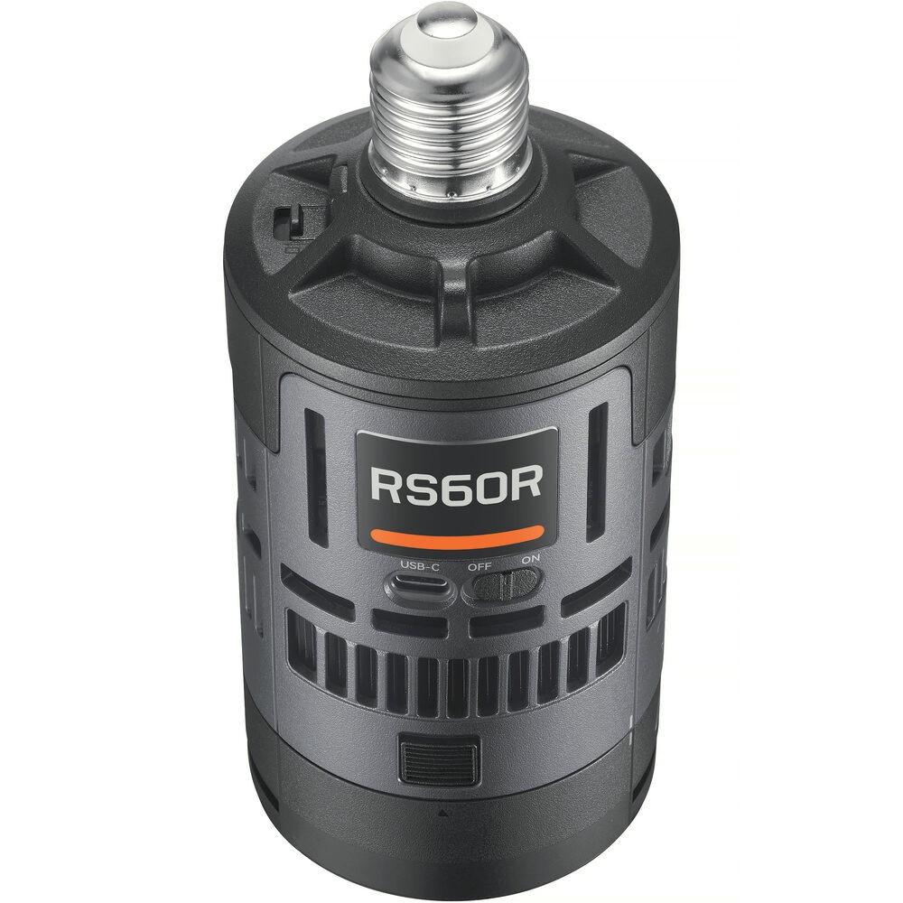 RS60R ima polnilno baterijo 3400 mAh, polnjenje USB-C in ventilator za neprekinjeno delovanje brez pregrevanja. Uporabniki lahko svetlobo nadzorujejo lokalno, prek Bluetootha, DMX ali prek aplikacije Godox Light za naprave iOS in Android, z brezžičnim dometom do 196 ft.