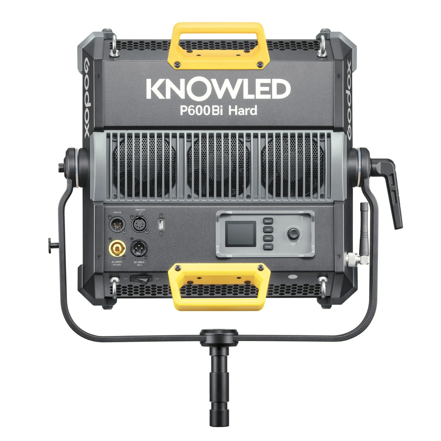 Godox Knowled P600Bi Hard je kompakten, a zmogljiv dvobarvni LED-panel, zasnovan za profesionalne filmarje, kinematografe in direktorje osvetlitve. Kljub majhni površini 30 × 30 cm proizvaja do 650 W moči z razponom spremenljive barvne temperature od 2800 do 6500 K, kar zagotavlja prilagodljivost za usklajevanje z okoljsko svetlobo ali ustvarjanje želenih razpoloženj. Njegove ocene CRI in TLCI ≥96 zagotavljajo natančno barvno reprodukcijo za televizijske in filmske aplikacije.