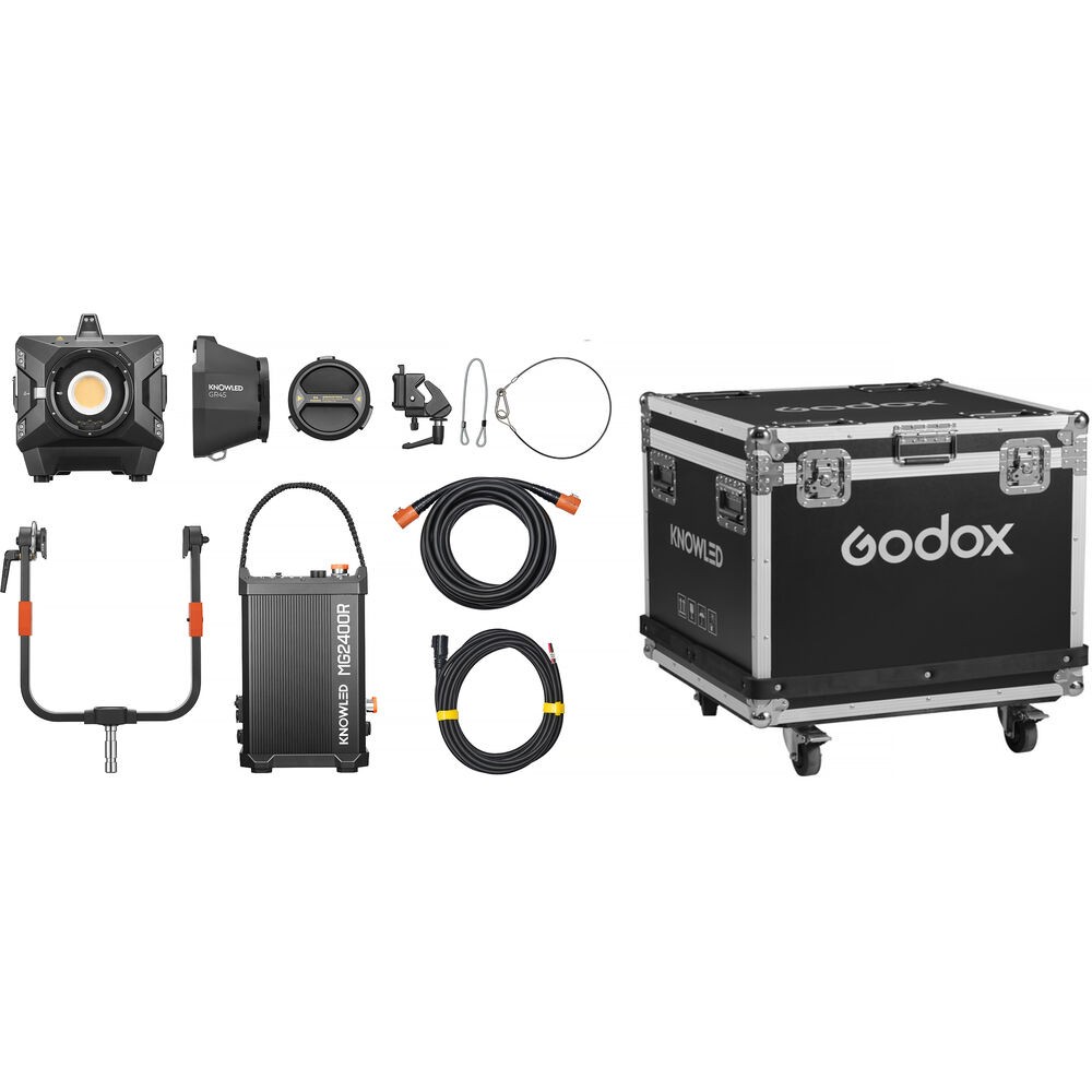 Godox KNOWLED MG2400R RGB LED Monolight s kovčkom za prevoz je profesionalna rešitev za osvetlitev, zasnovana za studijsko, filmsko in televizijsko produkcijo. Ta monolight, ki ga napaja izmenični tok, ponuja polni spekter 1800–10.000 K CCT, nadzor barv RGB, 14 načinov FX in delovanje brez utripanja ter zagotavlja natančno in vsestransko osvetlitev. MG2400R je opremljen z robustnim kovčkom za prevoz, reflektorjem, napajalnikom in nosilcem in je pripravljen za zahtevna snemanja v notranjih in zunanjih prostorih.