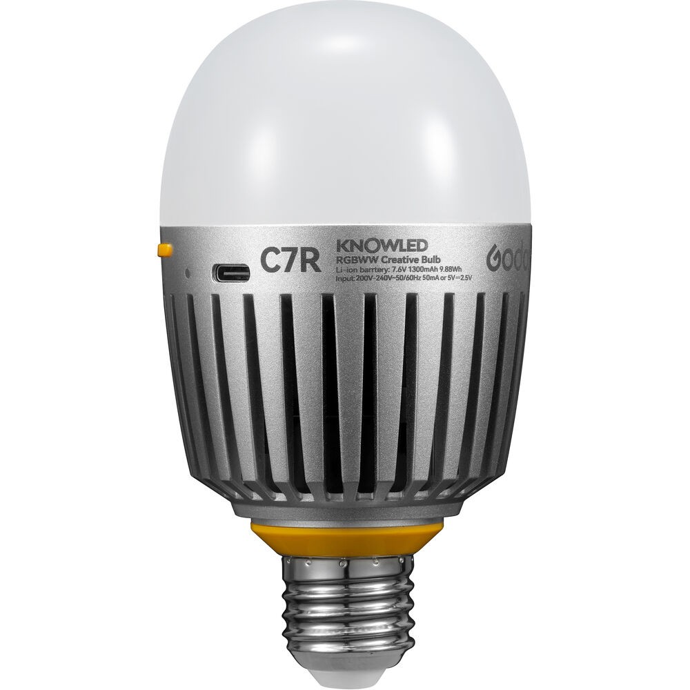 Godox C7R RGBWW Creative Bulb (baterijska različica) je vsestranska, popolnoma nastavljiva LED-žarnica z vgrajeno baterijo in možnostjo napajanja prek USB-C. Z visoko kakovostnimi barvami CRI 96 in TLCI 98 ponuja načine RGB, HSI in 2000–10.000K CCT, brezstopenjsko zatemnitve in nadzor prek Bluetootha prek aplikacije Godox Light App – idealno za dinamično osvetlitev na katerem koli prizorišču ali kreativnem projektu.