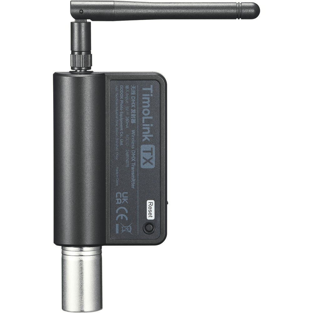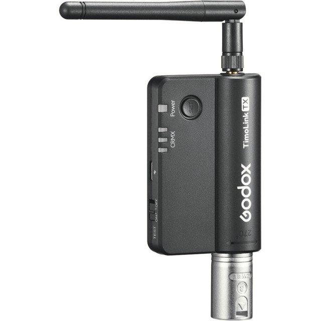 Brezžični DMX oddajnik Godox Knowled TimoLink TX je zasnovan za profesionalno brezžično upravljanje vseh DMX-osnovanih svetlobnih delovnih tokov. TimoLink TX vključuje standardni oddajnik LumenRadio CRMX in zagotavlja stabilno komunikacijo brez motenj na razdaljah do 300 metrov, kar ga naredi idealnega za filmsko produkcijo, televizijske studije, gledališke prostore in dogodke v živo. S pretvorbo žične DMX-ovalske konzole v brezžični sistem zagotavlja takojšnjo združljivost z lučmi, ki podpirajo CRMX, in sprejemniki tretjih proizvajalcev, s čimer odpravlja omejitve pri polaganju kablov.