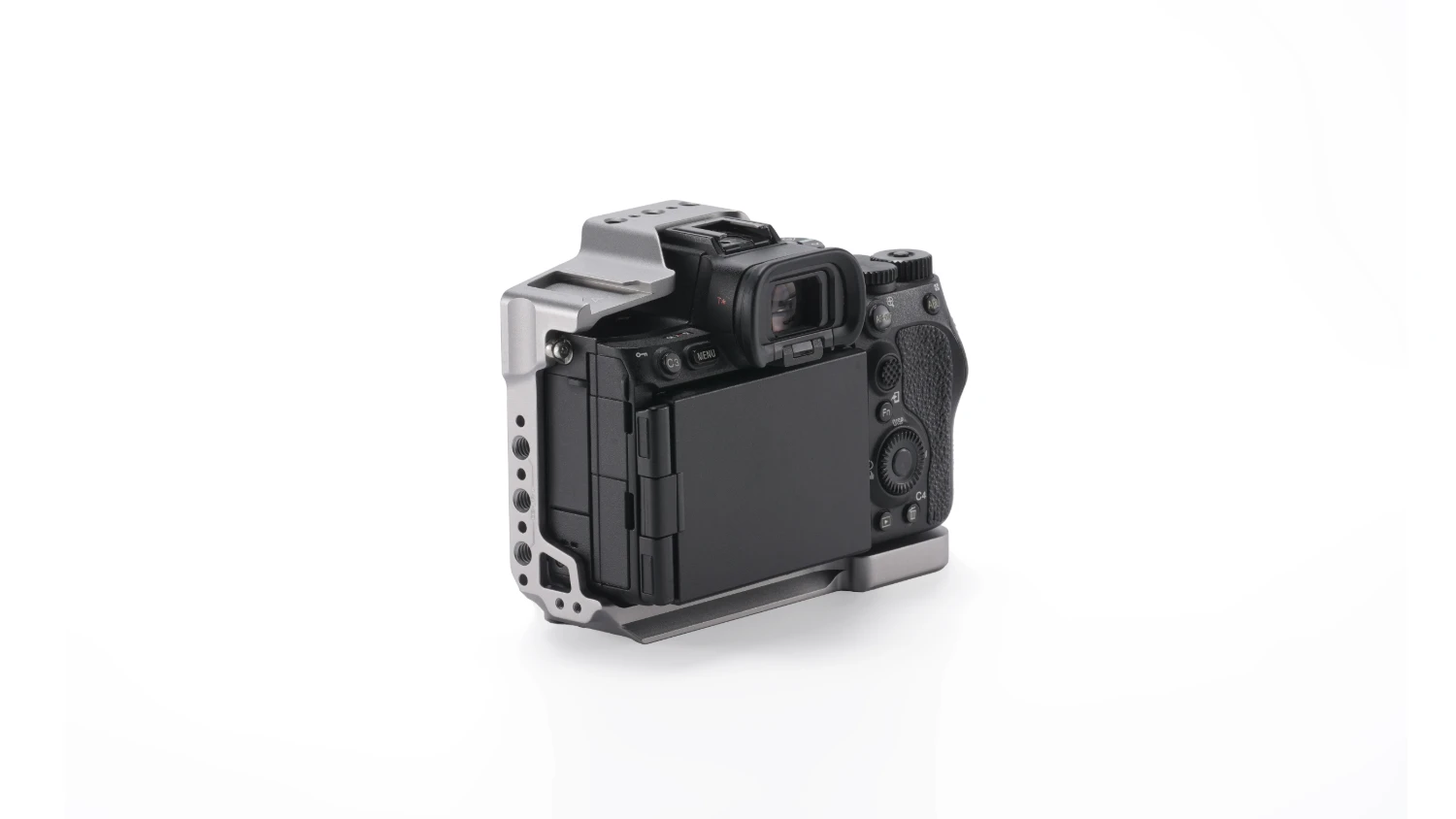 Ohišje je izdelano iz visokotrdne aluminijeve zlitine v elegantni titanovo sivi barvi in ohranja minimalističen profil, ki se tesno prilega ohišju kamere. Ta izbira oblike ohranja nizko skupno težo, kar je idealno za snemanje na poti, vloganje in profesionalno produkcijo videov, kjer je mobilnost ključnega pomena. Polovično ohišje ponuja delno zaščito pred udarci, hkrati pa omogoča popoln dostop do prostora za baterijo, vrat, gumbov, OEM bliskavice, mikrofonov in adapterjev za objektive.