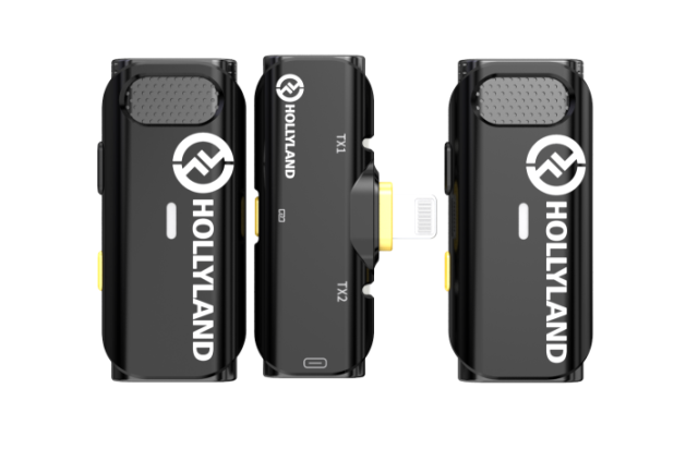 S črnim brezžičnim mikrofonskim sistemom LARK C1 DUO podjetja Hollyland snemajte do dve osebi na svojo napravo iOS, opremljeno s sistemom Lightning, za mobilno novinarstvo ali ustvarjanje vsebin. Sistem vključuje dva oddajnika z vgrajenimi vsesmernimi mikrofoni in en dvokanalni sprejemnik - vse to v kompaktni obliki. Sponki na hrbtni strani vsakega oddajnika omogočata, da ju pritrdite na klop srajce, medtem ko se vtični sprejemnik priključi neposredno na vrata Lightning na pametnem telefonu ali tabličnem računalniku, ki ga tudi napaja.