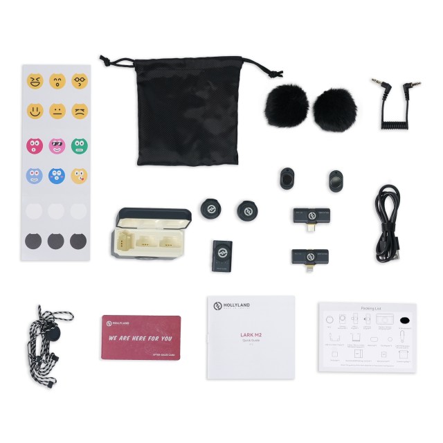 LARK M2 je na voljo v štirih različicah: mobilna različica s priključkoma Lightning ali USB-C, različica s kamero in kombinirana različica. Vsak paket vključuje široko paleto dodatne opreme, vključno z zaščito pred vetrom, kabli in posebno ogrlico za vsako oddajno enoto.