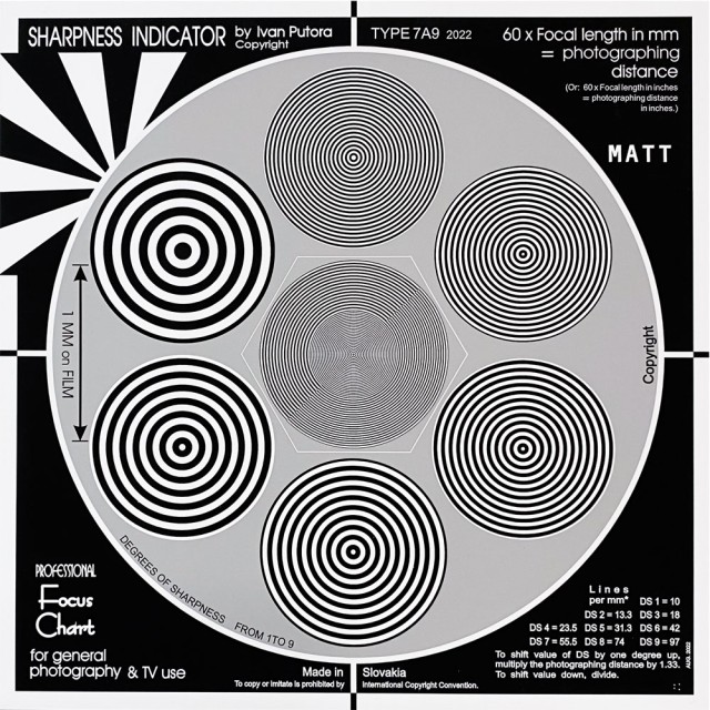 Indikator ostrine Putora je najnaprednejša in najnatančnejša testna tabela. Vsak fotograf lahko natančno oceni ostrino in ločljivost vseh vrst filmov, videoposnetkov in fotoaparatov.