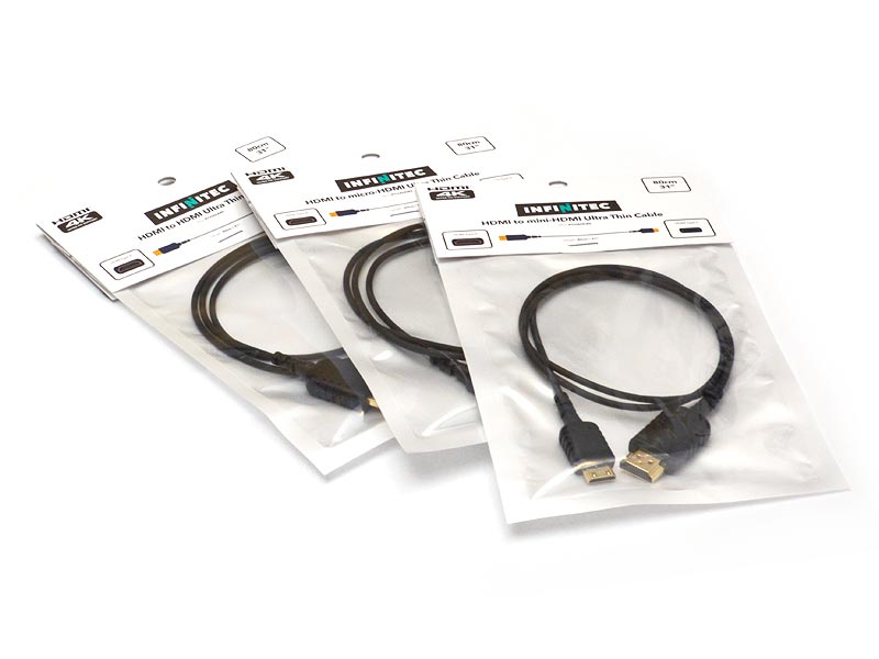Infinitecovi kabli HDMI vključujejo visokokakovostne konektorje, visoko hitrost ter izjemno prilagodljiv in zelo tanek kabel HDMI (le 2,6 mm) za popolno "upravljanje kablov" na vaši opremi, stabilizatorju kamere ali fotoaparatu. Popolna prilagodljivost, debelina le 2,6 mm in podpora standardu HDMI v2.0 za video 4K 60p so le bistvene lastnosti za današnje kretnike, ki zahtevajo najvišjo kakovost!