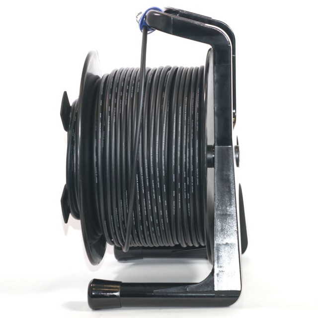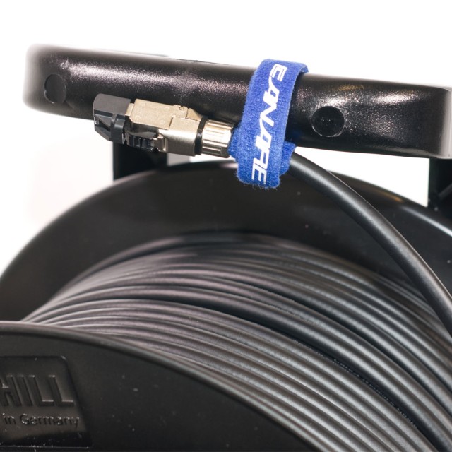 Fleksibilni kabel CAT6A STP 23AWG z zunanjim premerom 8,6 mm s priključki Telegartner RJ45, navit na kabelski boben Schill GT 380.RM. Ethernetni kabli se ne uporabljajo le za računalniška omrežja, temveč v zadnjem času tudi za digitalna avdio omrežja, omrežne kamere in prenose HDBaseT. Skupna dolžina kabla je prikazana vključno s priključki.