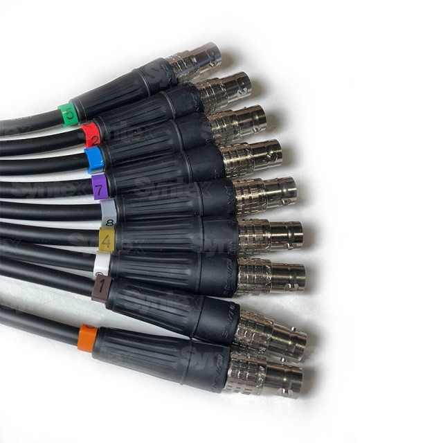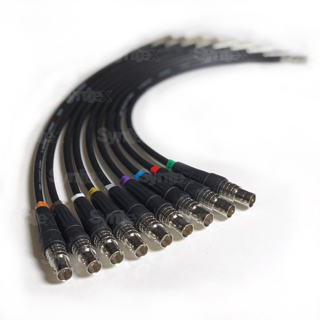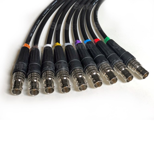 Komplet 9 povezovalnih kablov za kartice Blackmagic Design DeckLink Quad. Dolžina kabla - 0,3 m, konektorji BNC tipa F - ženski