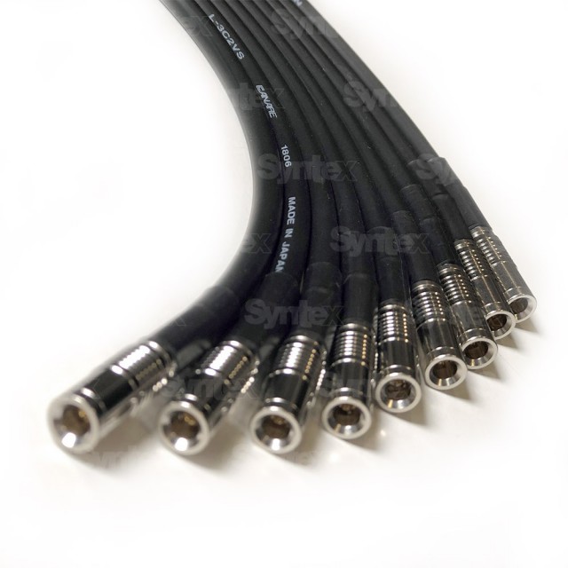Komplet kablov je izdelan iz visokokakovostnega, prilagodljivega koaksialnega kabla, priključkov DIN 1.0/2.3 in BNC (ženskih) japonskega proizvajalca Canare.