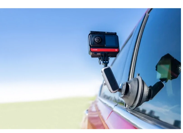 Insta360 INST110-24 nosilec kamere s priseskom je trpežna rešitev za pritrditev, zasnovana za varno namestitev kamere na gladke površine. Ta nosilec iz aluminijeve zlitine ima dva nastavljiva spoja za maksimalno prilagodljivost pri namestitvi, nosilnost do 1,5 kg in je primeren za uporabo pri hitrostih do 80 km/h.