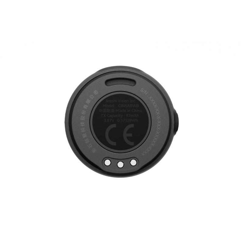 Insta360 Mic Air Transmitter je ultralahki brezžični mikrofon, ki tehta 7,9 g in meri 2,7 cm x 1,2 cm, z možnostjo snemanja 48 kHz/24-bit. Ponuja aktivno odpravljanje hrupa, domet 30–50 m in do 7,5 urno življenjsko dobo baterije. Pritrditev z magnetom, sponko ali obeskom. Brezžična povezava s kamerami Insta360 (X5/X4, Ace Pro 2) brez sprejemnika. Na ohišju mikrofona so gumbi za izklop, dušenje hrupa in utišanje. Polnjenje prek USB-C.